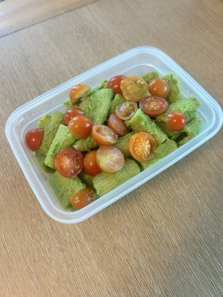 - Mix Strain the pasta and add your pesto, mix. Top with additional protein or vegetables if desired.