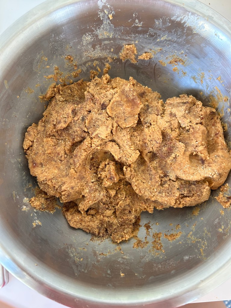 3. Combine ingredients In a medium sized bowl, mix the mashed dated, oat flour, peanut butter, and flax seed meal until combined.