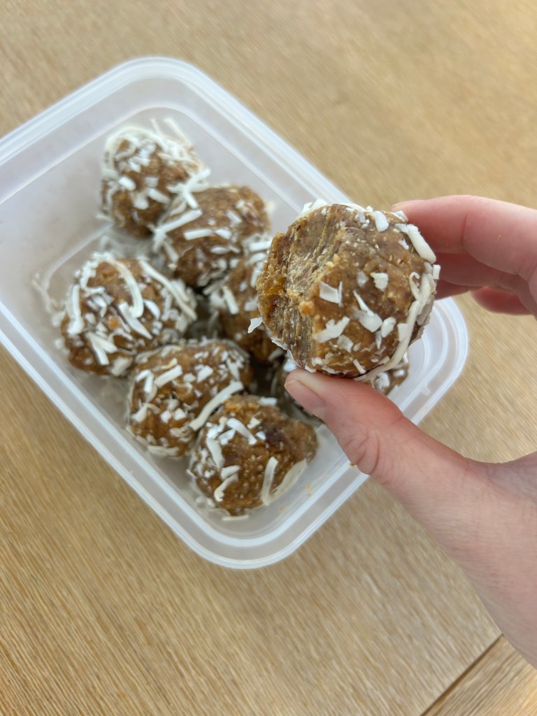 4. Roll into balls Form the mixture into balls and roll in remaining coconut flakes. Freeze or refrigerate and enjoy as a healthy, protein-filled snack.