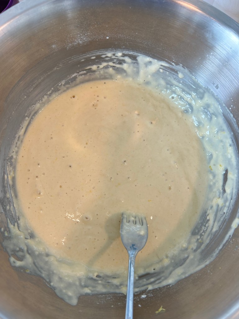 - Mix batter Mix all of the ingredients together in a large mixing bowl.