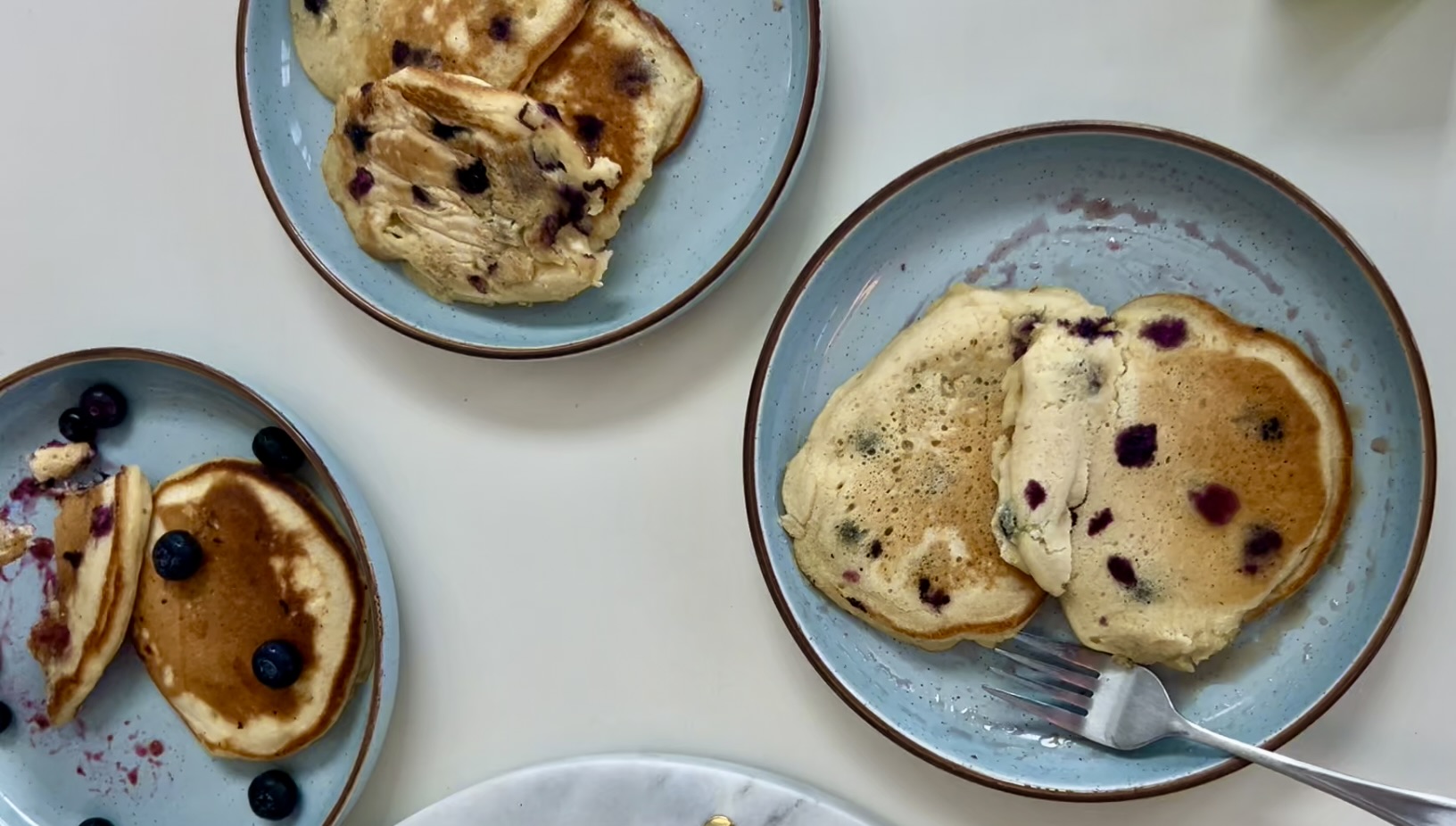 These pancakes are bursting with sweet blueberries and fresh lemon flavor for a light and refreshing start to your day.